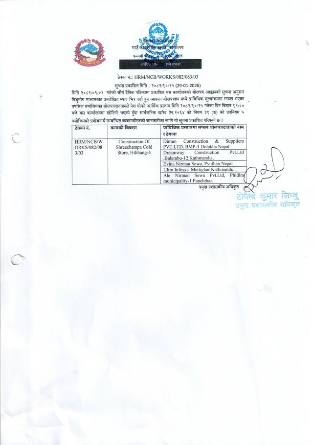 आर्थिक प्रस्ताव खुल्ने सूचना॥