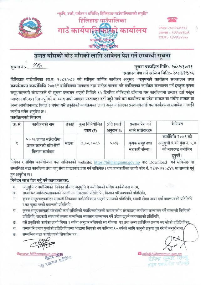 » उन्नत घाँसको वीउ मागको लागि आवेदन पेश गर्ने सम्बन्धी सूचना ॥