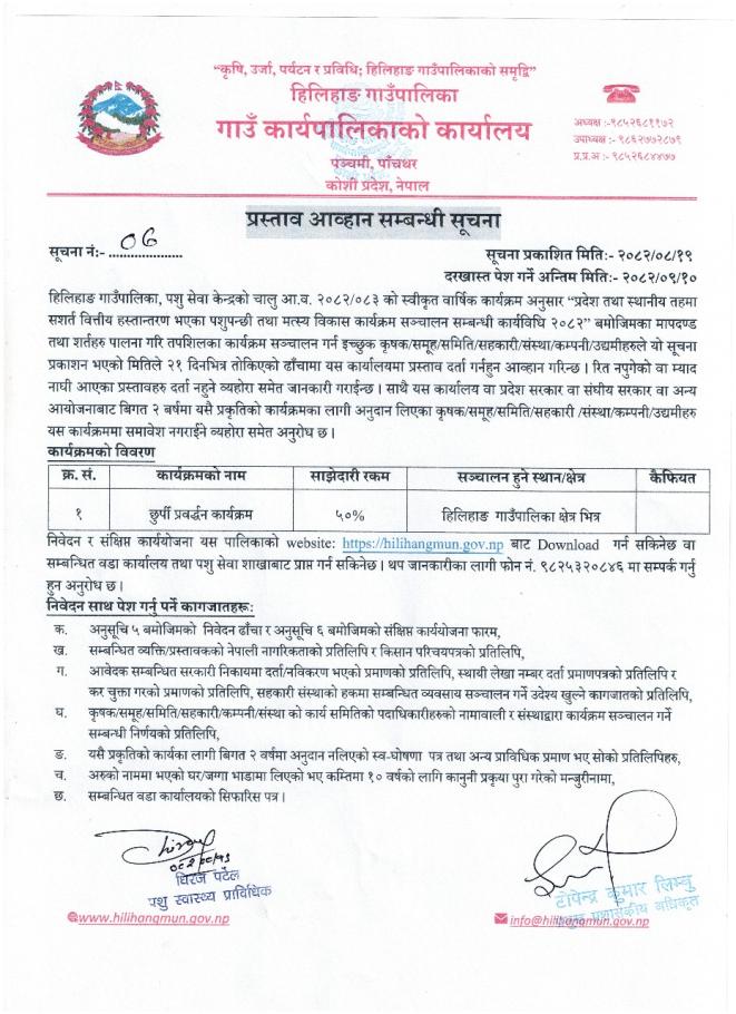 आ.व. २०८२/८३ को आन्तरिक आय ठेक्का बन्दोवस्त सम्बन्धी दरभाउपत्र आव्हानको सूचना ॥