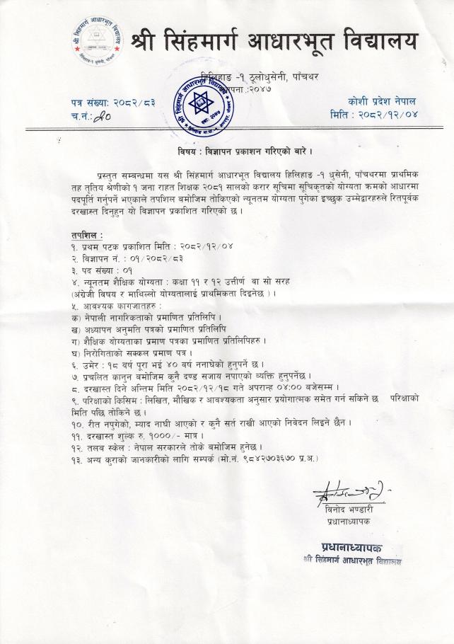 विज्ञापन प्रकाशन गरिएको बारे ।