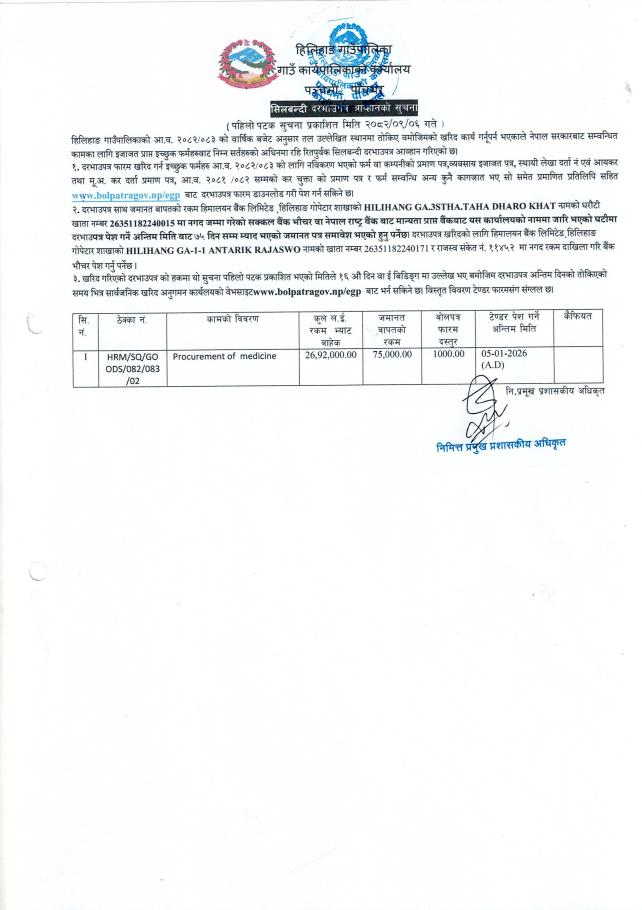 सिलबन्दी दरभाउपत्र आव्हानको सूचना ॥