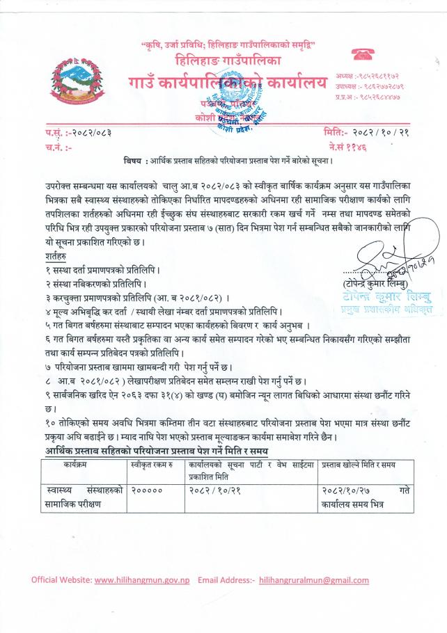 आर्थिक प्रस्ताव सहितको परियोजना प्रस्ताब पेश गर्ने सूचना ॥
