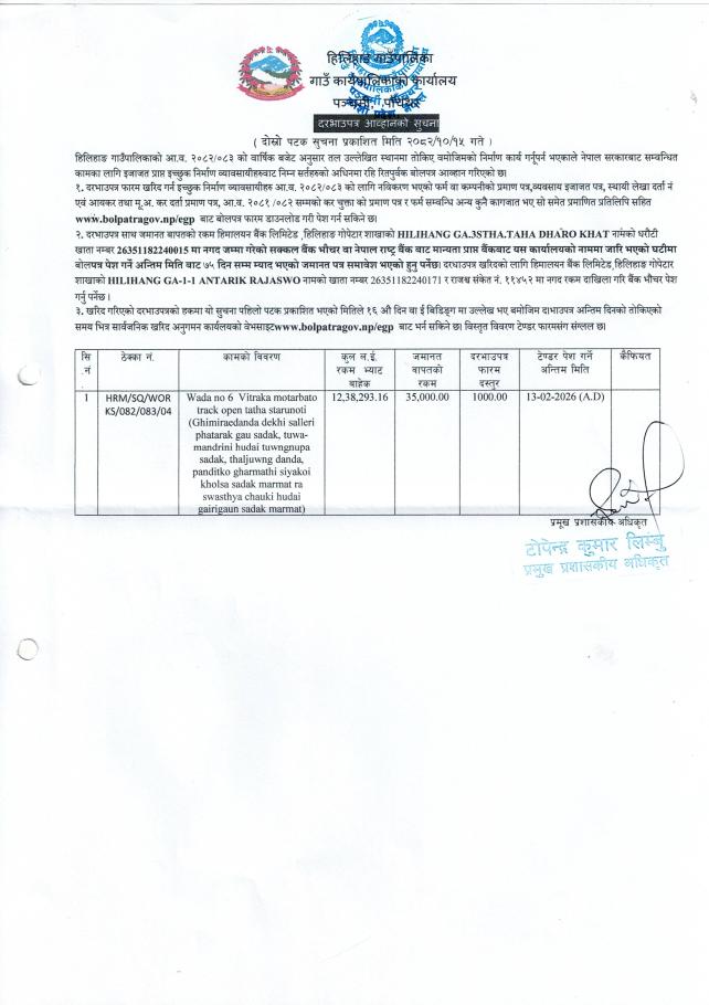 सार्वजनिक खरिद/बोलपत्र सुचना