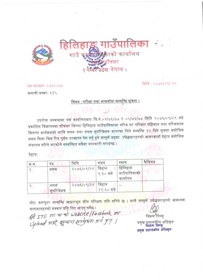 परीक्षा तथा अन्तर्वाता सम्वन्धि सूचना ।।