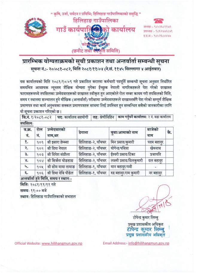 » प्रारम्भिक योग्यताक्रमको सूची प्रकाशन तथा अन्तर्वार्ता सम्बन्धी सूचना