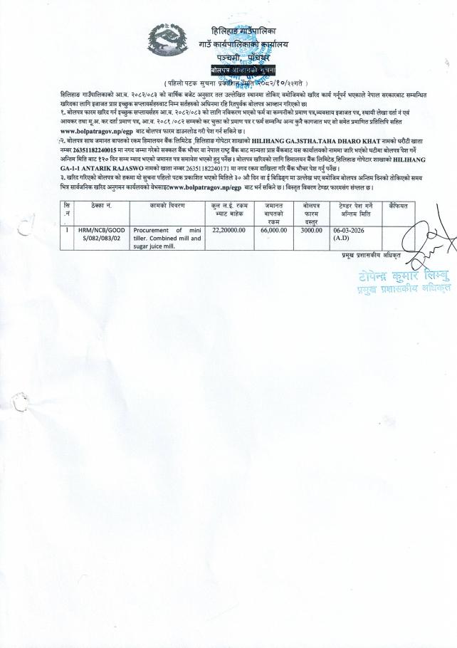सार्वजनिक खरिद/बोलपत्र सुचना