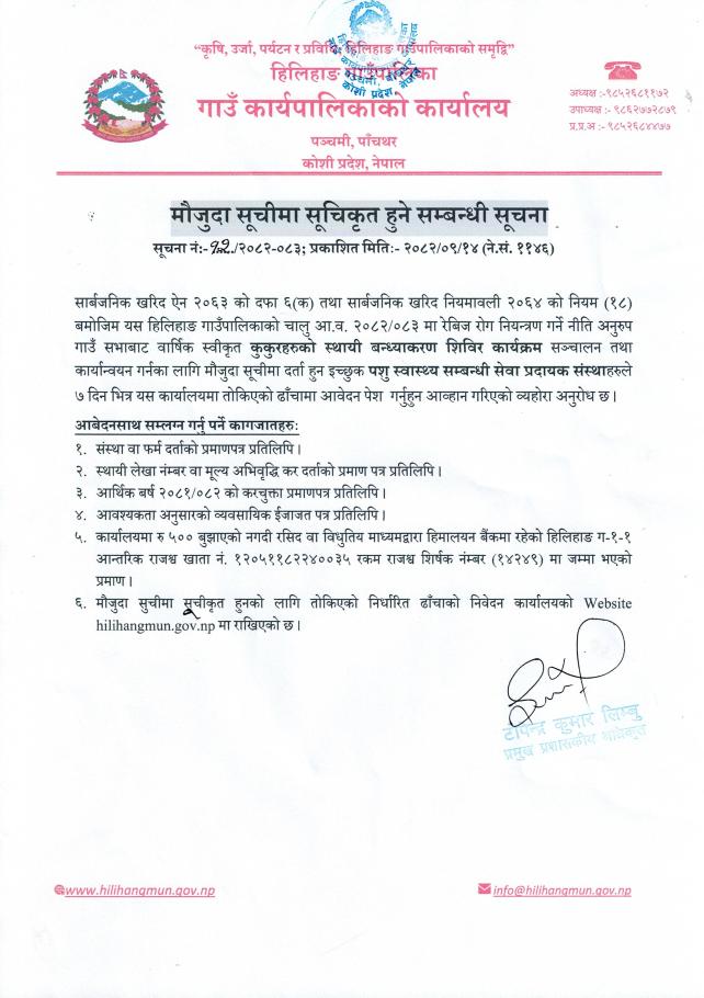 » मौजुदा सूचीमा सूचीकृत हुने सम्बन्धी सूचना ॥