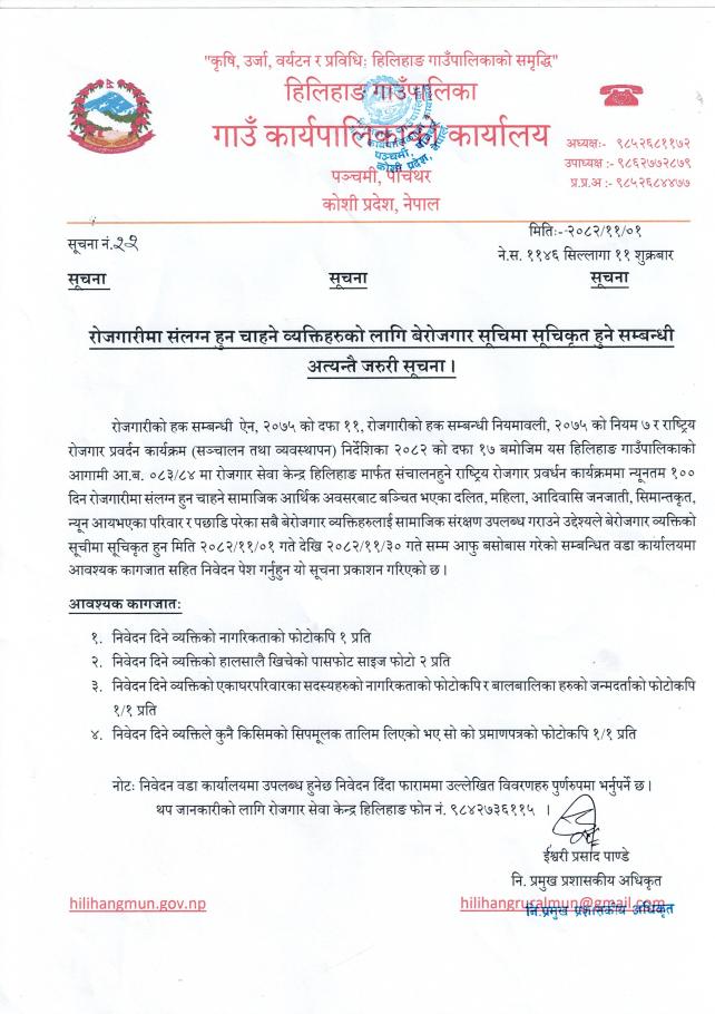 रोजगारीमा संलग्न हुन चाहने व्यक्तिहरुको लागि बेरोजगार सूचीमा सूचीकृत हुने सम्बन्धी अत्यन्तै जरुरी सूचना ॥
