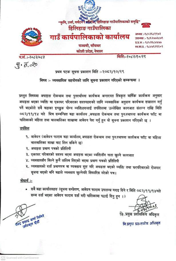 व्यवसायिक सहयोगको लागि सूचना ॥॥