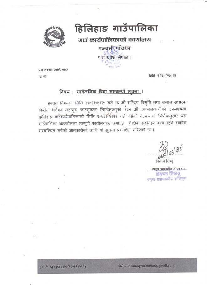 » स्थानीय बिदा सबंन्धि सूचना ।