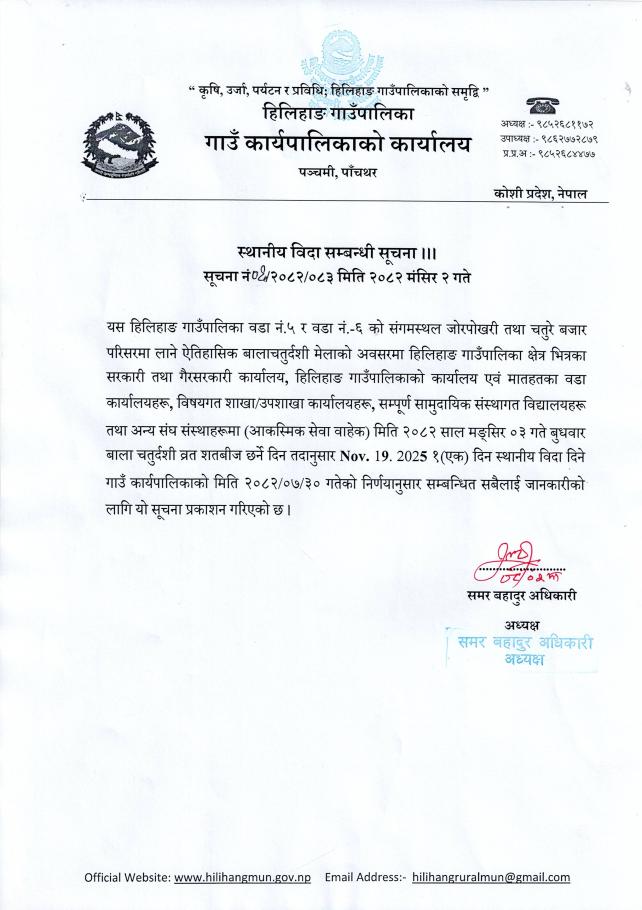 » स्थानीय बिदा सम्बन्धी सूचना ॥