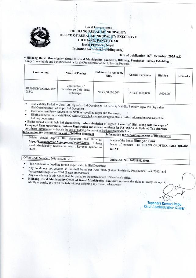 चौथो पटकः आ.व. २०८२/८३ को आन्तरिक आय ठेक्का वन्दोवस्त सम्बन्धी दरभाउ पत्र आव्हानको सूचना ॥